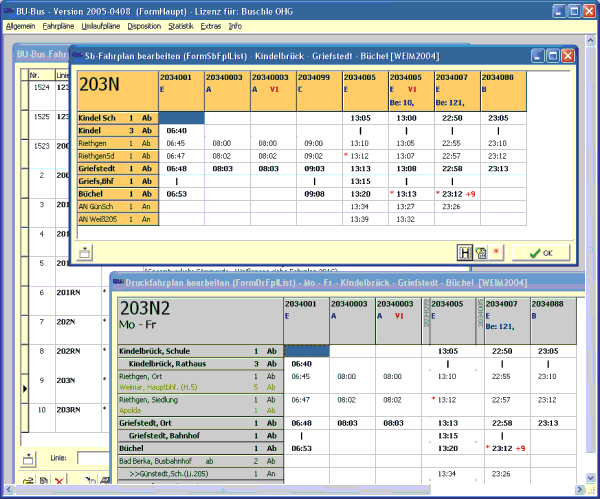 • Im Bereich "Software für den ÖPNV" bildet BU-BUS Win32/DX10 unser Kernprodukt. Es ist ein Planungsprogramm für den öffentlichen Personen-Linienverkehr. Sie dient Verkehrsunternehmen, Kommunen und Beratungs-Unternehmen zur Planung, Gestaltung, Verwaltung und Disposition von Omnibus-Linienverkehren. Die Planung erfolgt dabei direkt am Bildschirm mit einem einfach zu bedienenden, netzwerkfähigen Windows-Programm.